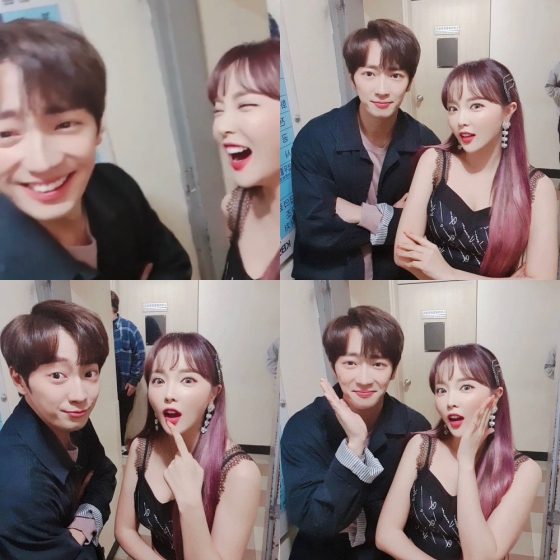 홍진영은 10일 자신의 인스타그램에 "KBS에서 마주친 상엽 오빠. 드라마 '한 번 다녀왔습니다' 많은 사랑 부탁드려요. 지금 생방송 뮤직뱅크 보고 계신가요? 금방 만나요. #사랑은 꽃잎처럼"이라는 글과 함께 동영상, 사진을 게재했다.