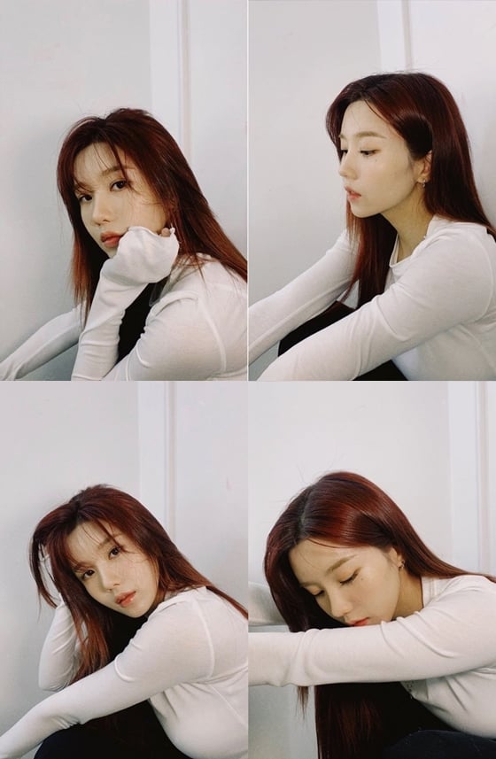 공개된 사진 속에는 머리를 붉게 물들인 채 흰 티셔츠를 입고 카메라를 응시하는 권은비의 모습이 담겼다. 권은비는 작은 얼굴과 오똑한 콧날로 물오른 여신 미모를 자랑했다.