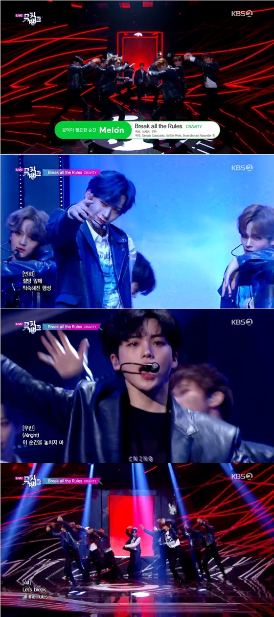 '뮤직뱅크' 크래비티가 곡 'Break all the Rules'(브레이크 올 더 룰즈)로 데뷔했다.