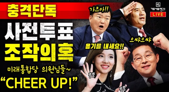 썸네일 속 나연의 사진 위에는 '용기를 내세요'라는 문구가 쓰여있다. 이와 함께 트와이스의 히트곡 'CHHER UP'을 써서 마치 나연이 미래통합당 의원들을 응원하는 듯한 모습을 연출했다.