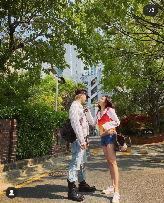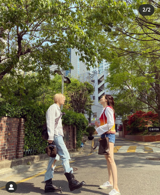 같은날 현아는 던과 행복한 데이트 사진도 공개했다. 현아와 던은 길가에 서서 서로를 바라보고있어 눈길을 끈다.