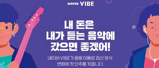 네이버는 최근 '내 돈은 내가 듣는 음악에 갔으면 좋겠다(내돈내듣)' 캠페인을 공개했다. 캠페인의 핵심은 '이용자 중심' 정산 방식이다. '이용자 중심' 정산방식은 이용자가 들은 음원의 저작권자에게만 사용료를 지급하는 것이며, 상반기 중 바이브에 적용된다. 네이버는 이 방식이 가요계의 오래된 문제 중 하나인 사재기 문제를 해결하고 공정 경쟁을 이끌 것이라고 강조하고 있다.