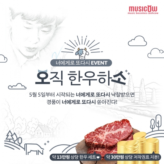 세계 최초 저작권 공유 플랫폼 뮤직카우(구 뮤지코인)가 5월 가족의 달을 맞이해 한우이벤트를 준비한다.