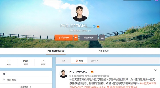 6일 오후 4시 현재 박유천의 공식 웨이보 계정 팔로워는 약 1900명이다.