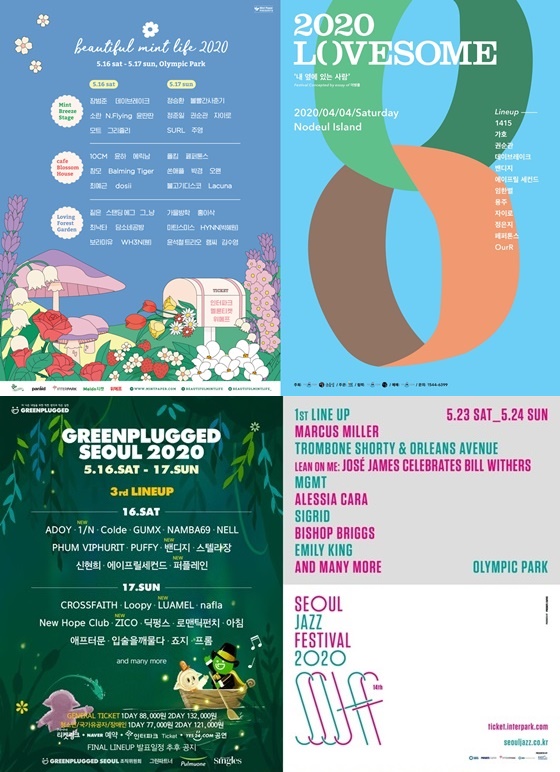 코로나19로 가장 큰 타격을 입은 것은 공연 쪽이다. 정부의 사회적 거리두기 방침이 이어짐에 따라 올 봄 음악축제는 전멸해버렸다. '뷰티풀 민트 라이프 2020', '2020 러브썸'이 취소됐고, '그린 플러그드 2020', '서울 재즈 페스티벌 2020', '월드 디제이 페스티벌 2020'은 연기를 결정했다.