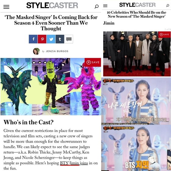 이렇듯 방탄소년단 지민을 향한 러브콜이 계속되면서 미국판 복면가왕 새 시즌에 지민이 출연하게 될지 관심이 쏠리고 있다.
