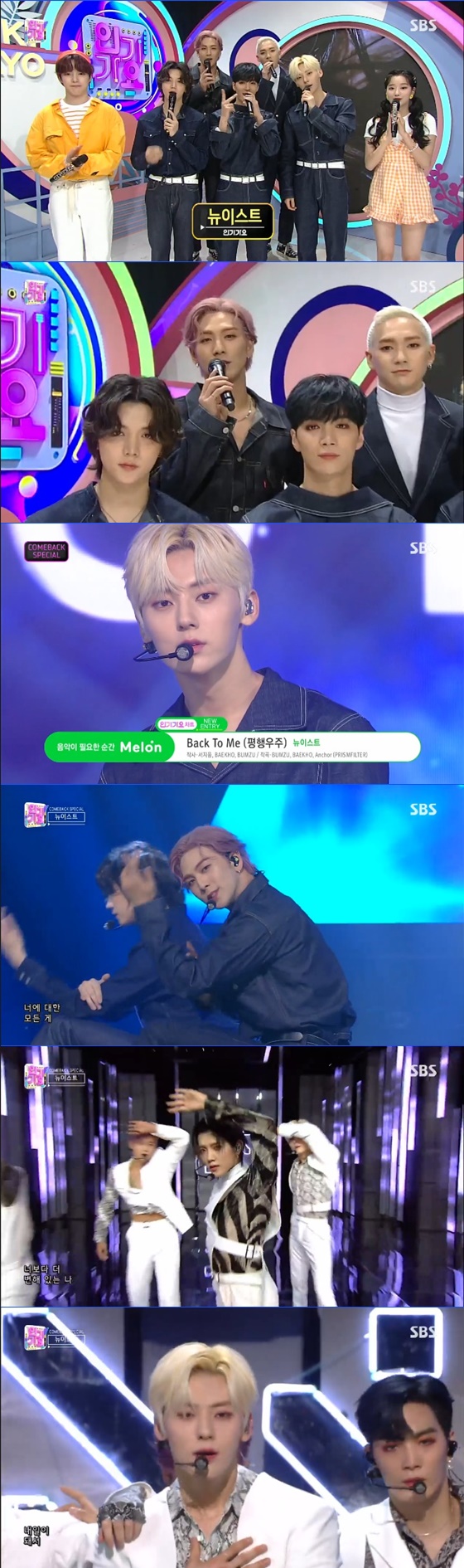 17일 오후 방송된 SBS 음악순위 프로그램 '인기가요'에서는 뉴이스트가 컴백하는 모습이 그려졌다.