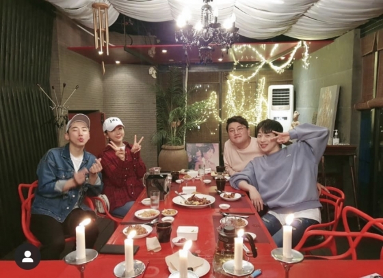 가수 안성훈이 같은 소속사 식구들과 외식했다.