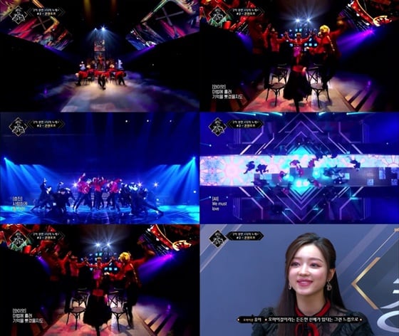 특히 이날 무대는 소속사 선배인 오마이걸 멤버 유아가 지원 사격해 함께 무대를 꾸며 다른 팀들의 감탄을 자아냈다. 유아는 "오마이걸이란 든든한 선배가 있다는 느낌으로 힘을 받고 1위하길 바란다"고 전하며 선후배간의 훈훈함을 자아냈다.