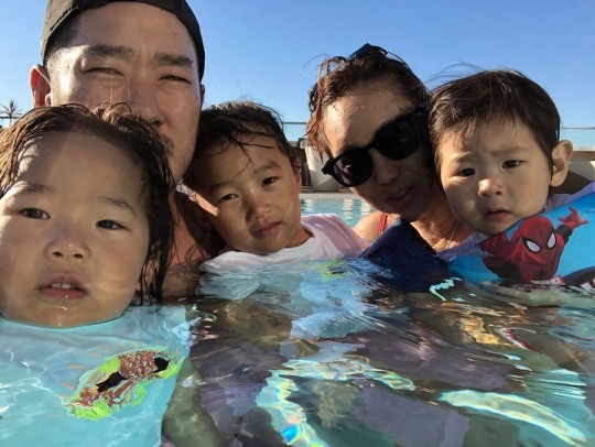 'LA 거주' 쿨 유리, 세 자녀·남편과 수영장서 여유만만