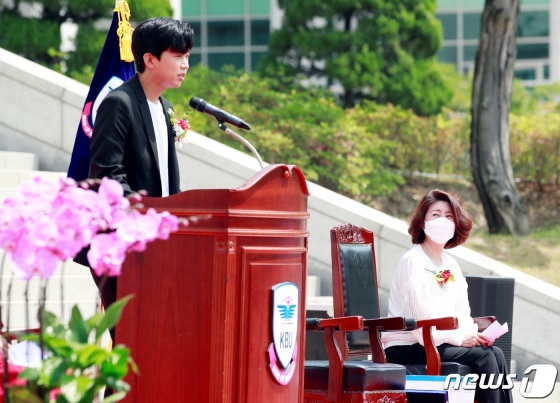 '미스터트롯' 우승자 가수 임영웅이 모교를 빛낸 공로로 상을 받았다. 임영웅은 상금을 전액 기부했다.