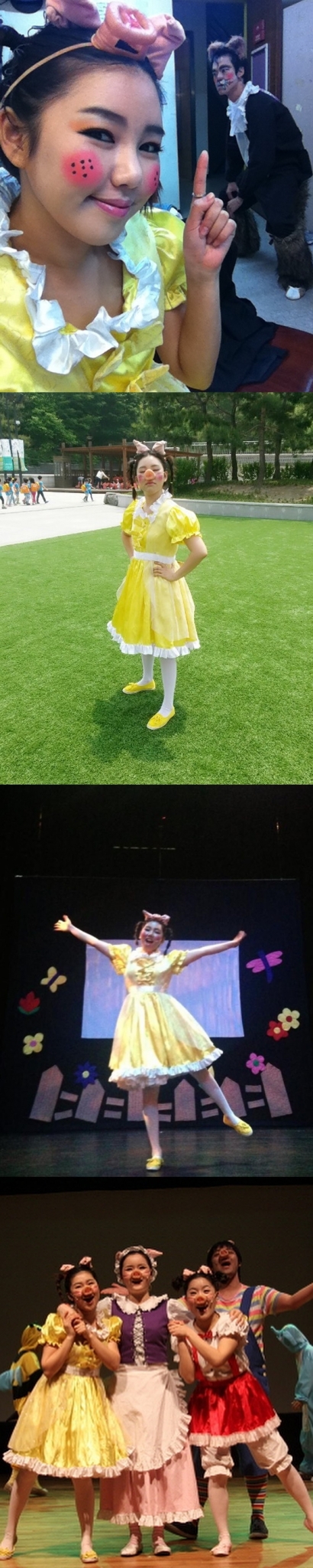 송가인은 지난 7일 자신의 인스타그램에 "어린이 국악 뮤지컬 아기돼지 꼼꼼이 하던 시절 나는 돈돈이"라는 글과 함께 여러 장의 사진을 게재했다.