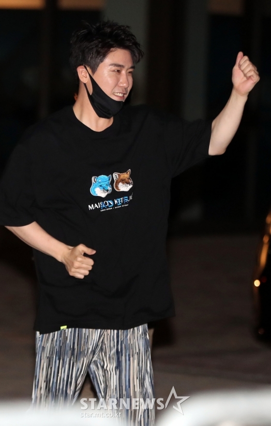 미스터트롯TOP7 영탁이 16일 오전 인천광역시 중구 운서동 파라다이스시티 스튜디오에서 진행된 '미스터트롯 : 사랑의 콜센타' 녹화를 마치고 팬들과 인사를 나누고 있다.