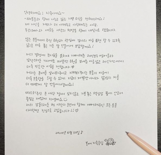 지숙은 또한 "제 결정에 눈시울을 붉히며 기뻐해 준 레인보우 멤버들과 따뜻한 응원을 보내준 레인너스에게 더욱 뜨끈한 마음을 전한다"라며 "따스히 주신 큰 사랑 절대 잊지 않고 좋은 책임감 품에 안고 즐겁고 재밌게 지낼게요"라고 덧붙였다.