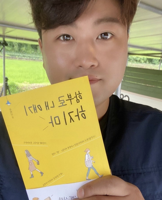 사진 속 김호중은 책을 든 채 카메라를 응시하고 있다. 줄어든 얼굴 여백에서 다이어트 효과가 드러나는 듯 하다.