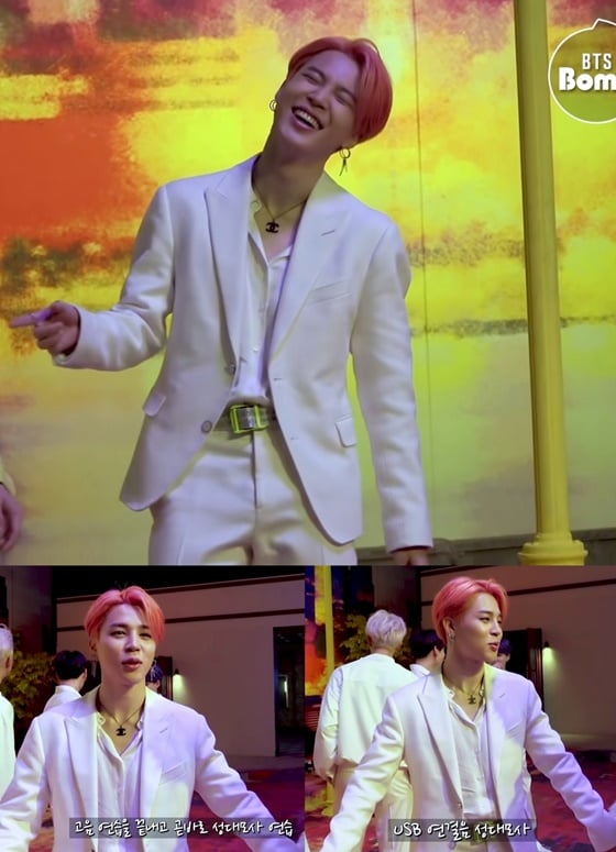 지난해 '작은 것들을 위한 시(Boy With Luv)' 뮤직비디오 촬영 때의 모습으로 일명 '자몽 지민'(자몽 색깔로 염색해서 팬들이 지어 준 별명)이 촬영 전 잠시 쉬는 시간에 멤버들과 즐거운 시간을 보내고 있는 영상이다.