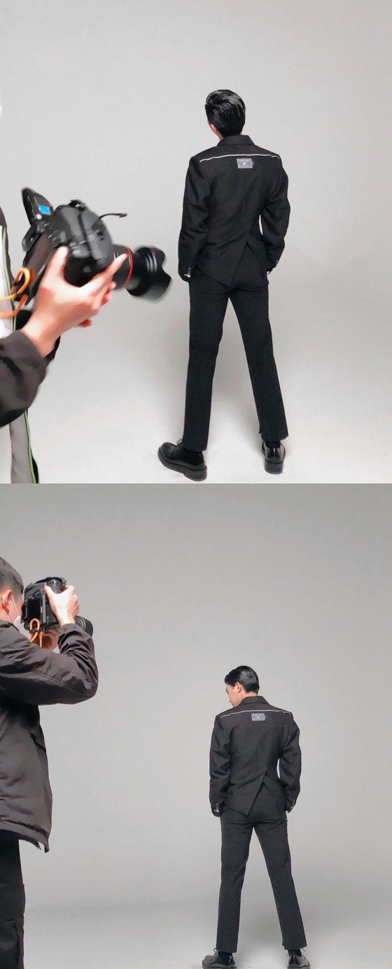 사진 속 임영웅은 정장을 입고 뒤돌아있다. 위에서 내려 찍은 지옥의 각도에도 굴욕 없는 비율을 선보였다.