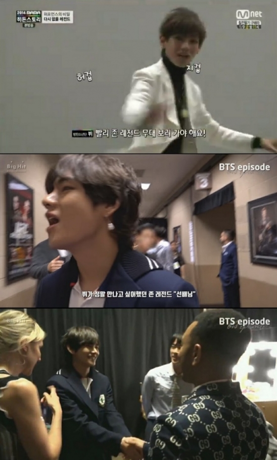 최근 모델이자 배우인 존 레전드의 아내 크리시 티건(Chrissy Teigen)이 지난 2014년 홍콩에서 열린 MAMA에 참여한 뷔가 존 레전드 무대를 보기 위해서 “존 레전드! 존 레전드!”외치면서 빠른 속도로 뛰어가는 영상을 귀엽다는 글과 함께 포스팅했다.