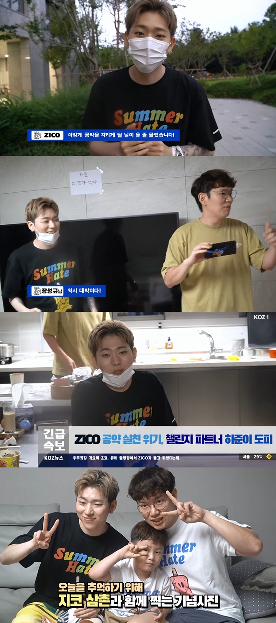 비록 챌린지 파트너인 장성규 아들의 부끄러움으로 공약 이행은 실패했지만, 지코와 다정히 기념사진을 촬영하며 훈훈함을 안겼다.