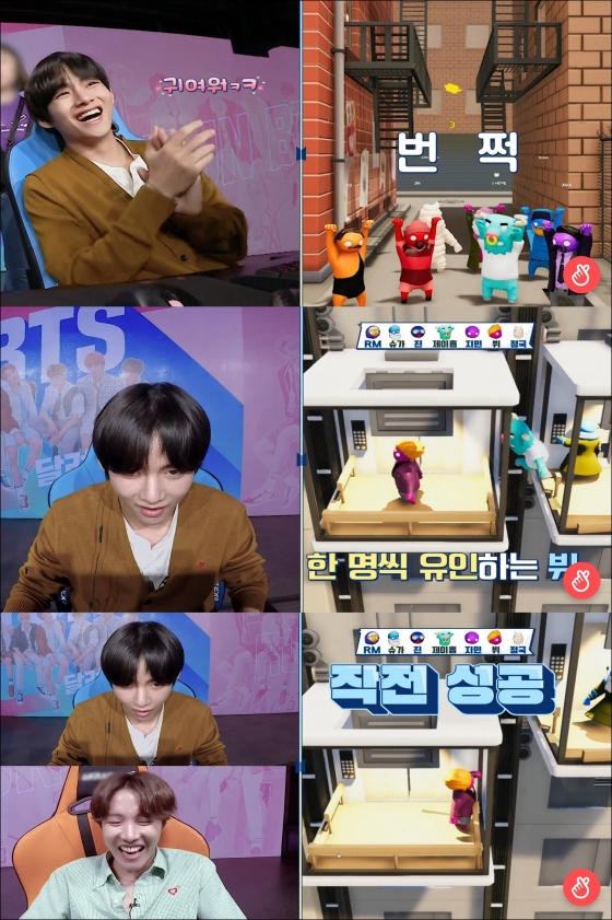 지난 14일 공개된 방탄소년단의 자체 예능 프로그램 '달려라 방탄' 108화에서는 지난주에 이어 e스포츠 아레나에서 경주게임 '테일즈런너'와 단체 격투게임 '갱비스트'를 즐기며 즐거운 시간을 보내는 멤버들의 모습이 그려졌다.