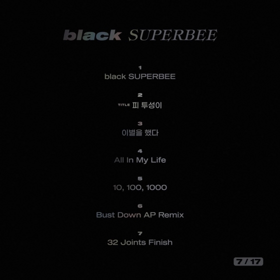 'Black SUPERBEE'(블랙수퍼비)는 지난 16일 SNS를 통해 공개한 트랙리스트처럼 총 7트랙으로 구성된 미니앨범.