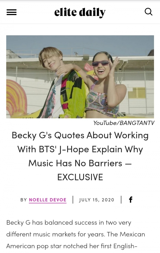 미국의 온라인 뉴스 플랫폼 엘리트 데일리(Elite Daily)는 지난 15일 베키 지의 최근 활동에 대한 특집기사를 통해 관련 내용을 보도했다.
