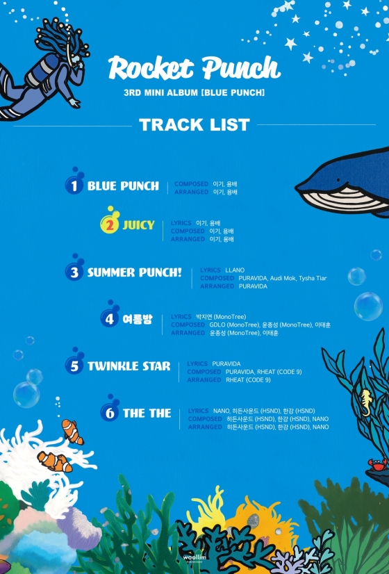 로켓펀치는 26일 0시 공식 SNS 채널을 통해 오는 8월 4일 발매되는 미니 3집 'BLUE PUNCH'의 트랙리스트와 함께 'BLUE PUNCH' 필름을 오픈했다.