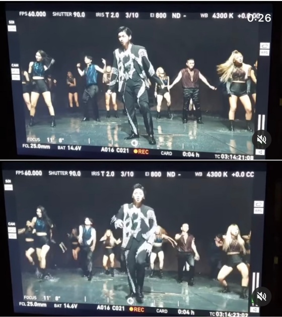 사진 속 강다니엘은 독특한 모양의 수트를 입은 채 춤을 추고 있다. 강다니엘의 넓은 어깨와 튼튼한 근육은 귀여우면서도 섹시한 매력을 돋보이게 한다.