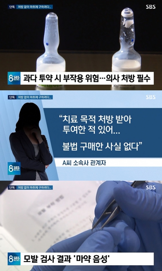 27일 SBS '8뉴스'는 마약류로 지정된 프로포폴 대신 전신마취유도제인 에토미데이트를 구하려는 사람들이 늘고 있다고 보도하며, 아이돌 그룹 출신 A씨가 이 약물을 구입하려다 하다가 경찰조사를 받았다고 보도했다.