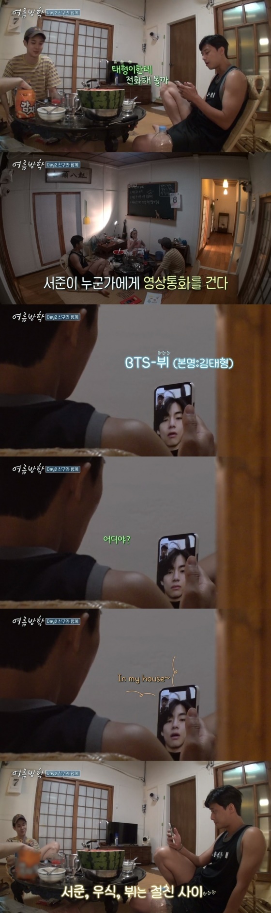 지난 24일 최우식의 리얼리티 프로그램 tvN '여름방학'에 박서준이 손님으로 초대되어 뷔에게 영상통화를 연결했고, 이 장면은 아미들을 행복하게 만들었다.