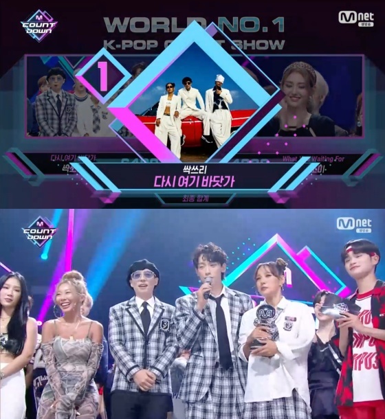 싹쓰리는 지난 30일 오후 방송된 케이블채널 엠넷 음악방송 프로그램 '엠카운트다운'에서 '다시 여기 바닷가'로 1위를 차지했다.