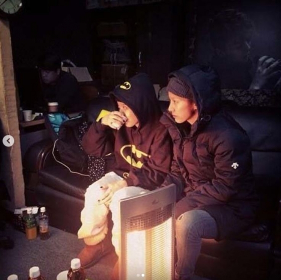 타이거JK는 '린다'의 차트 1위를 축하하며 "사진은 MFBTY '살자' 앨범 때, 의정부에서 무대 회의중인 두 퀸"이라고 밝혔다.