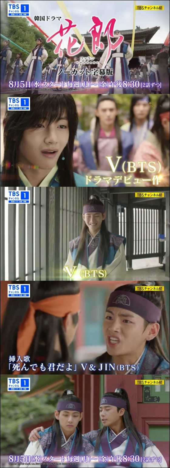 그룹 방탄소년단(BTS) 뷔의 드라마 데뷔작인 '화랑'(花郞)이 일본에서 전편 방송돼 팬들을 설레게 하고 있다.