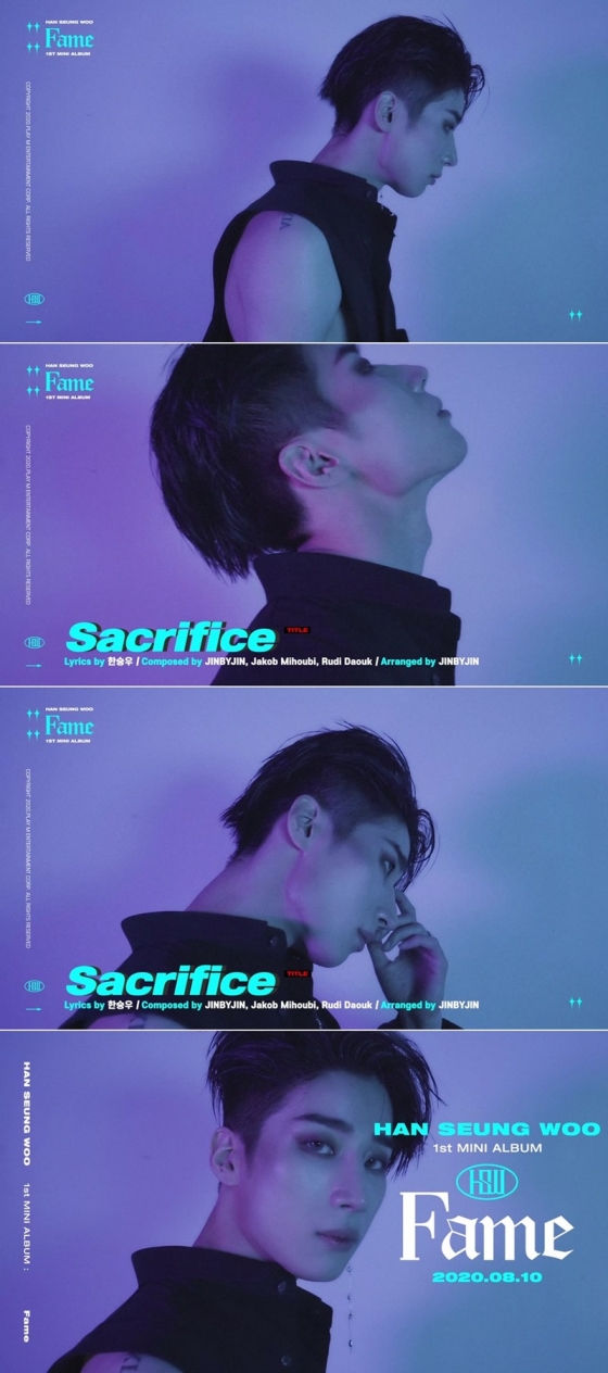 소속사 플레이엠엔터테인먼트는 7일 빅톤 공식 SNS 및 팬카페를 통해 한승우 첫 솔로 앨범 'Fame'(페임) 타이틀 곡 'Sacrifice'(세크리파이스) 미리듣기를 담은 트랙 프리뷰 영상을 공개했다.