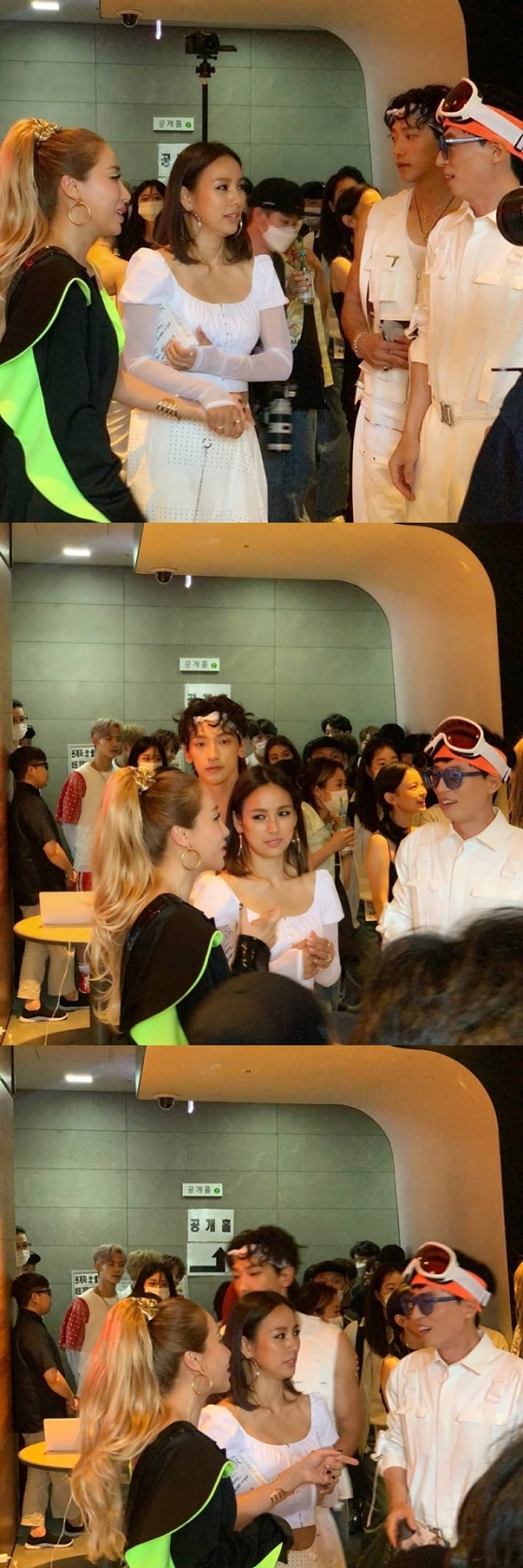 공개된 사진 속 이효리는 숙행의 손을 꼭 붙잡고 있다. 비와 유재석도 함께 대화하는 모습을 보여 훈훈함을 자아냈다.
