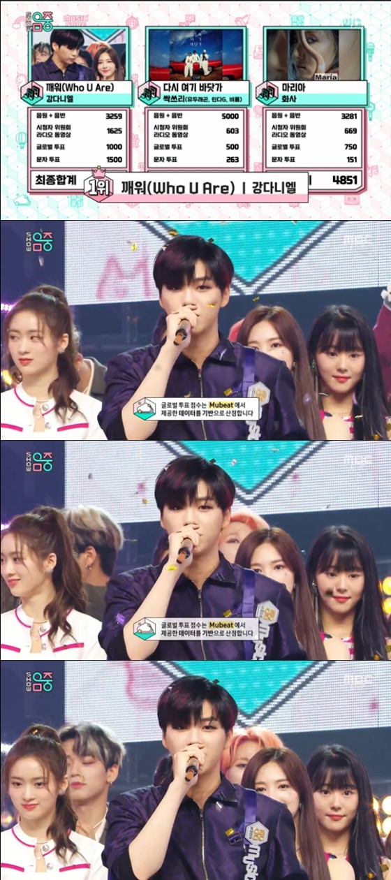15일 오후 방송된 MBC 음악순위 프로그램 '쇼! 음악중심'에서는 강다니엘이 1위에 오르는 모습이 그려졌다.