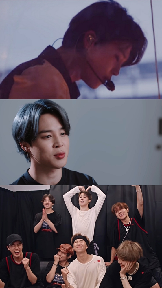 지민은 '내 인생의 가장 소중하고 빛나고 행복했던 순간을 같이하고 있는 사람들이라고 말할 수 있는 것 같다'는 인터뷰 나레이션을 통해, 평소 팬들과 무대, 멤버들을 아끼는 마음과 화려한 무대 뒤 20대 청년으로서의 진솔하고 깊은 내면의 모습까지 고스란히 전해왔다.
