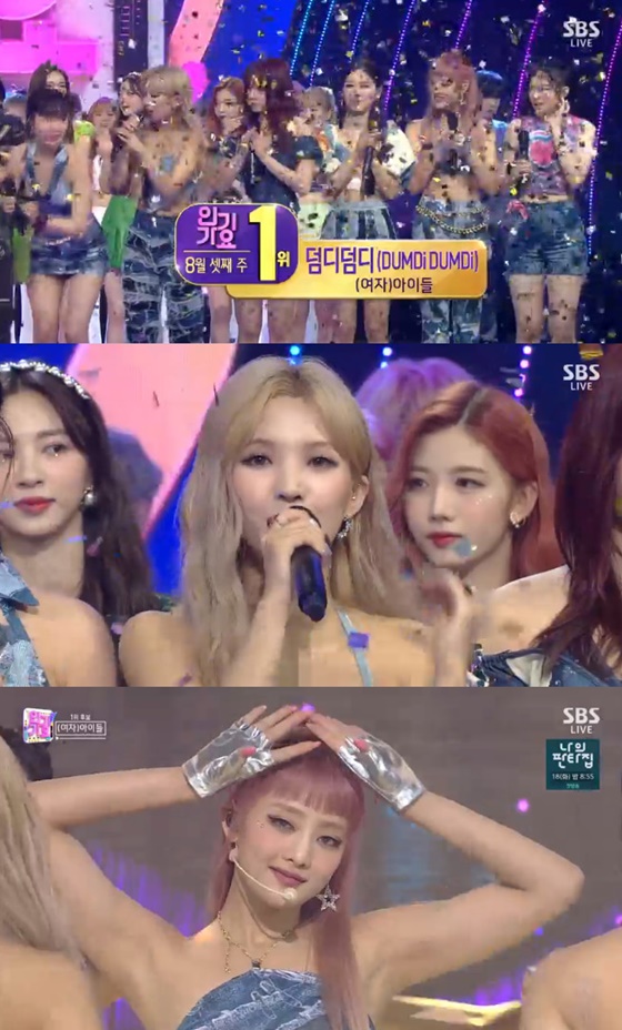 그룹 (여자)아이들이 '인기가요' 1위의 영예를 안았다.