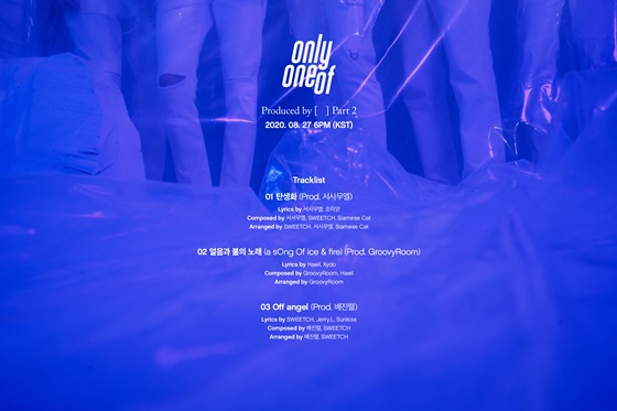 온리원오브는 20일 각종 SNS 계정을 통해 새 앨범 'Produced by [ ] Part 2' 트랙리스트를 공개했다.