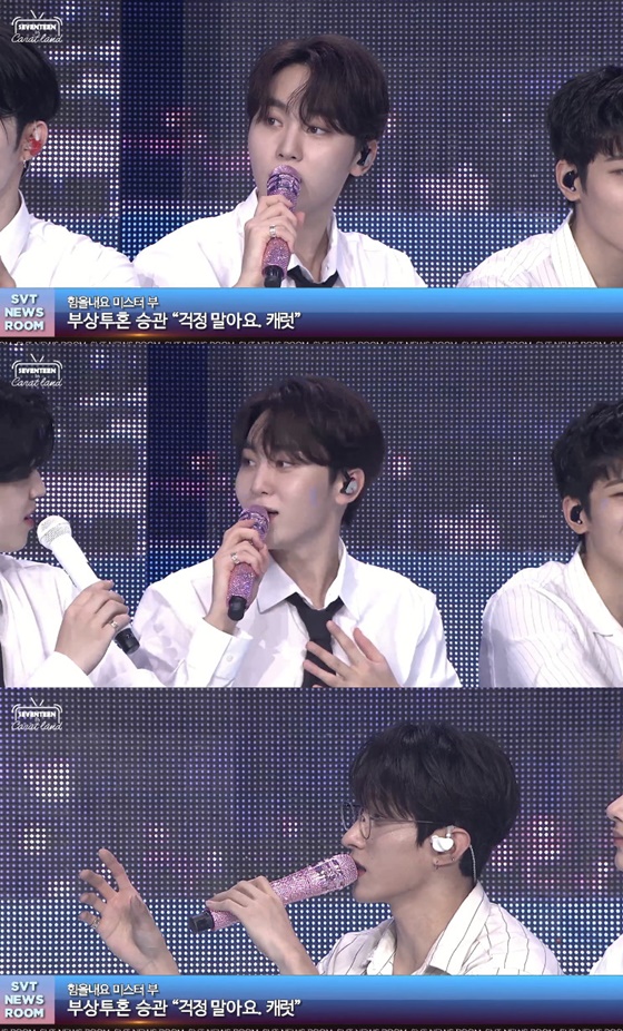 이에 멤버들은 "승관이 없는 빈 공간이 크게 느껴진다"며 "승관이 없으니 연습실 분위기가 완전 다르다"고 말했다. 이에 부승관은 "기회가 되면 멤버들에게 밥을 사드리겠다"고 미안해했다. 그러자 호시는 "승관이가 숙소에 있을 때 눈치가 보인다고 한다. 그럴 필요 없다"고 말해 훈훈함을 더했다.
