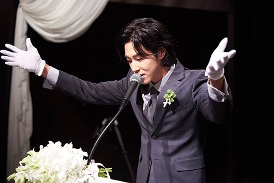 결혼식 사회를 보고 있는 그룹 동방신기 멤버 유노윤호의 모습도 함께 공개해 눈길을 끈다.