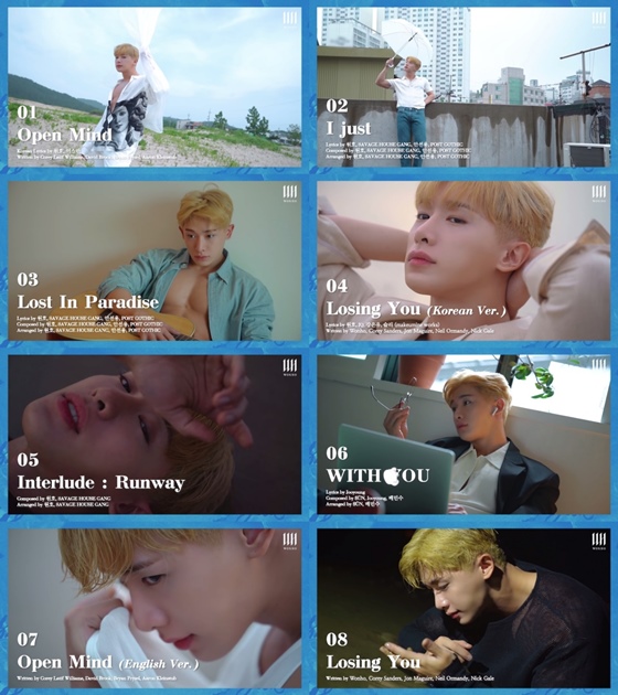몽환적인 분위기의 타이틀곡 'Open Mind'(오픈 마인드)를 시작으로 잔잔한 외로움 속에 퍼지는 아름다운 멜로디가 인상적인 'I just'(아이 저스트), 강렬한 비트와 어우러진 원호의 보컬이 매력적인 곡 'Lost In Paradise'(로스트 인 파라다이스), 글로벌 버전으로 선공개된 'Losing You'(루징 유), 관능적인 원호의 보이스를 느낄 수 있는 'WITH YOU'(위드 유)까지 총 8개의 트랙이 수록됐다.