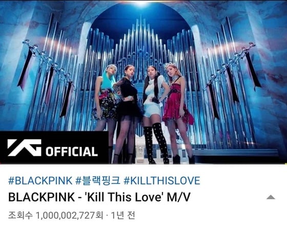 걸그룹 블랙핑크의 '킬 디스 러브(Kill This Love)' 뮤직비디오가 유튜브에서 10억뷰를 돌파했다. 블랙핑크 통산 두 번째 대기록이다.