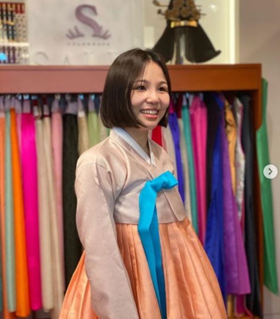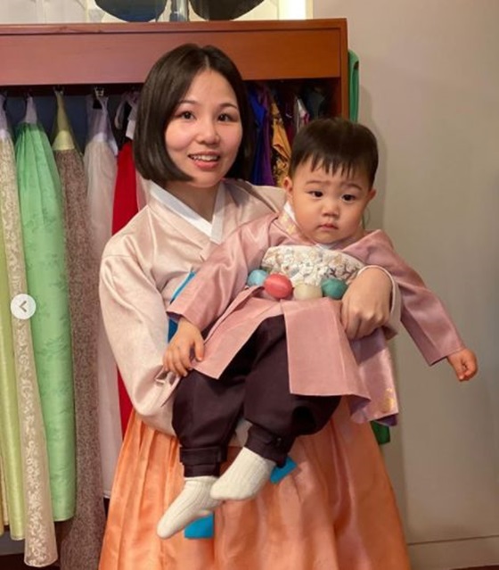 공개된 사진에는 한복을 곱게 차려 입은 알리의 모습이 담겨 있다. 또 다른 사진 속 알리는 아들 도건 군을 품에 안고 환하게 웃고 있다.