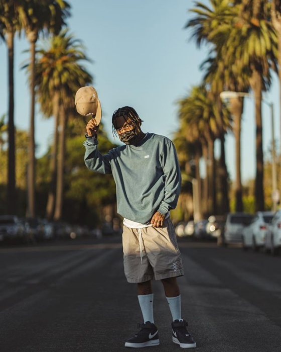 사진 속 도끼는 도로 위에서 마스크를 쓰고 자신감 넘치는 포즈를 취하고 있다.