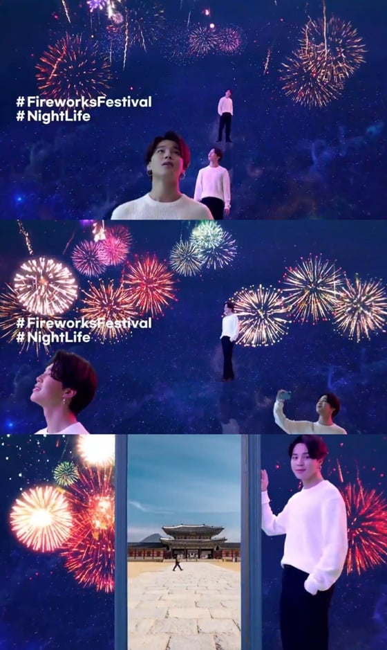 4일부터 공개된 멤버별 카운트다운 영상의 대미를 장식했던 지민은 국보 1호 숭례문 소개로 시작한 풀영상에서도 화려한 불꽃축제 배경에 #FireworksFestival #NightLife 해시태그와 함께 가장 마지막에 등장해 서울관광 홍보영상의 화룡점정을 찍었다.