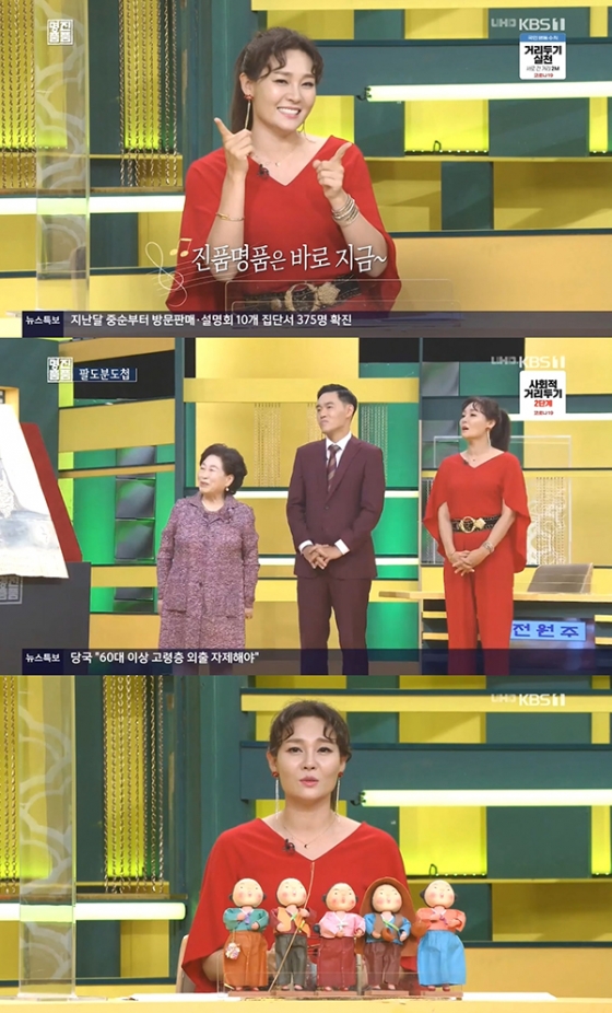 박주희는 20일 오전 방송된 KBS 1TV '진품명품에 출연해 자신의 신곡 '청바지'를 개사해 인사하며 존재감을 드러냈다.