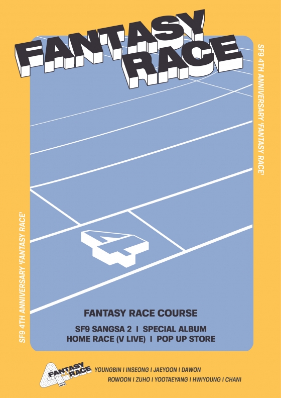 공개된 사진에서는 마라톤 트랙에 놓인 '4'가 눈길을 끈다. '판타지 레이스'는 SF9이 데뷔 주간 전후에 순차적으로 오픈하는 컨텐츠 기간을 의미하기도 하는데, 총 4가지의 레이스 코스를 통해 다양한 컨텐츠를 확인 할 수 있다.