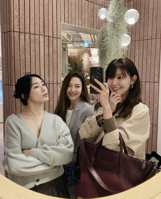 사진 속 수영과 티파니, 효연은 거울 앞에서 사진을 찍고 있다. 편안한 포즈와 환한 표정에서 세 사람의 우정이 엿보인다.