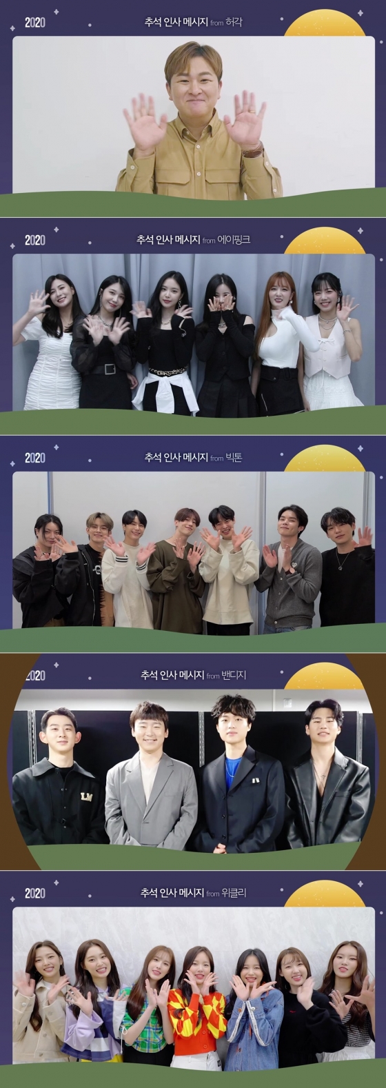 플레이엠은 30일 오전 공식 SNS 채널에 소속 아티스트인 허각, 에이핑크, 빅톤, 밴디지, 위클리의 추석 인사 영상을 깜짝 공개했다.